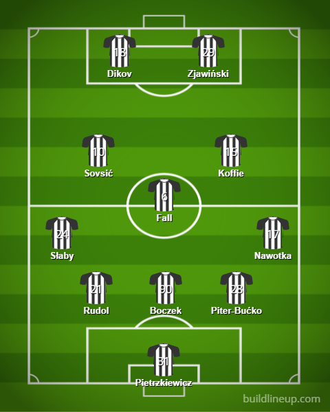 Dawid Pietrzkiewicz jako pewniak między słupkami, czekamy na konkurenta dla Kamila Słabego na lewej stronie. Ustalanie składu będzie rozpoczynać się rzecz jasna od Damira Sovsicia. Z pewnością pomijany nie może być również senegalski pomocnik Maissa Fall – pamiętajmy tylko, że ten w pierwszej kolejce po przerwie jest zawieszony. Swetosław Dikov dotychczas nie radził sobie w napadzie, więc pomagać może mu partner – tak, jak grano w meczach przygotowawczych. Bez wątpienia wszystko na bieżąco będzie się tasować, z ustawień możemy spodziewać się zarówno 3-4-1-2 , 3-3-2-2, tradycyjnego 4-4-2, jak i gry z tylko jednym zawodnikiem na szpicy.