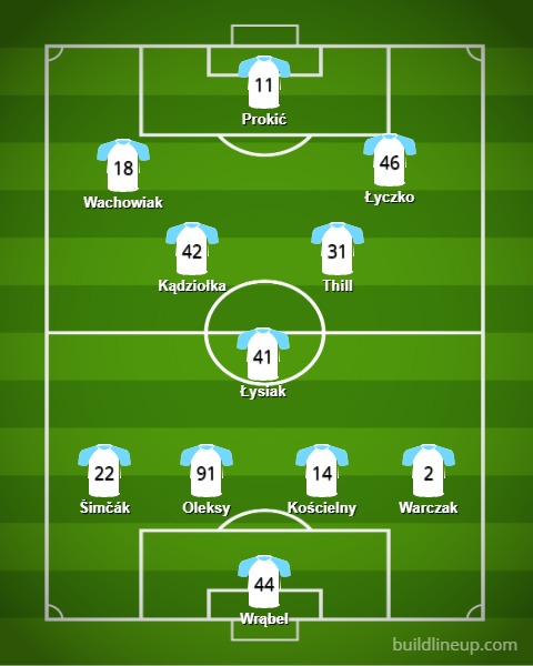 Za plecami doświadczonego Serba z polskim paszportem widzimy miejsce dla Krystiana Wachowiaka, który zimą przedłużył kontrakt z klubem do końca 2025 roku, a także dla Szymona Łyczki. Cofając się w głąb pola, środek murawy zajęty będzie przez Sebastiena Thilla, Szymona Kądziołkę oraz Karola Łysiaka. Linię obrony zbudują Patryk Warczak, Kamil Kościelny, Paweł Oleksy oraz Milan Šimčák. Bramki strzec będzie Jakub Wrąbel. Ważną rolę wiosną powinien odgrywać doświadczony Krzysztof Danielewicz, który może zająć miejsce młodego Kądziołki.