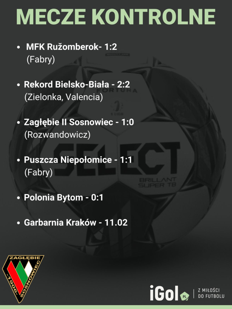 W meczach tych oglądaliśmy testowanych m.in. Patryka Zauchę (Cracovia), Michała Wcisła (Star Starachowice) czy Williama Remy’ego (w przeszłości Legia Warszawa). Formę Zagłębia przed startem ligowych rozgrywek sprawdzi jeszcze trzecioligowa Garbarnia Kraków.