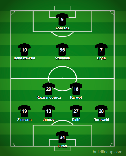 W drugiej linii, w formacji 4-2-3-1, postawiliśmy na kolejnego, nowego zawodnika. Meik Karwot zajmie miejsce na pozycji numer „6”, a obok niego zagra Maksymilan Rozwandowicz, ściągnięty latem z ŁKS-u Łódź. Przed nimi pozycję numer „10” zajmie Wojciech Szumilas, który o miejsce w składzie powalczy, lub będzie dzielił, z Sebastianem Boneckim. Szumilas dobrze spisywał się podczas zimowych pojedynków kontrolnych, więc to na niego stawiamy w kontekście pierwszej jedenastki.