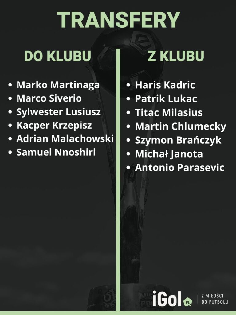 Poza nimi dużą rolę na boisku odgrywali również aktualny napastnik Miedzi Legnica – Krzysztof Drzazga oraz Jakub Bieroński, aktualnie zasilający linię defensywy GKS-u Tychy. Poza pożegnaniami, powitano nowych, mających odmienić grę, piłkarzy. Do klubu trafili m.in. Maksymilian Banaszewski, Piotr Tomasik, czy Bartosz Bida. Ten trzeci aktualnie jest najlepszym strzelcem klubu, bo strzelił aż… 3 bramki.