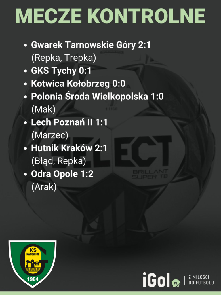 „GieKSa” w sparingach strzeliła siedem bramek – dwie Oskar Repka oraz po jednej Jakub Arak, Adrian Błąd, Mateusz Marzec, Mateusz Mak i młodzieżowiec Łukasz Trepka.