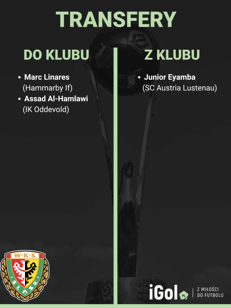 Podobno Śląsk Wrocław pracuje jeszcze nad następnymi transferami, jednak do tej pory wicemistrza Polski zasiliło dwóch nowych piłkarzy. Pierwszym z nich jest Hiszpan Marc Llinares, który opuścił szwedzkie Hammarby IF. 25-latek był tam głównie rezerwowym, o czym świadczy niewielka liczba minut na boisku w poprzednim roku (323). Llinares głównie gra na lewej obronie, jednak lubi także pograć ofensywnej i może obstawić również lewe skrzydło.