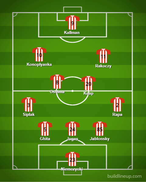 Nie ma co ukrywać, że ten środek pola wygląda dość biednie. Jest kilku przyzwoitych zawodników, jak Oshima czy Loshaj, ale to raczej taka średnia półka ligowa, dlatego być może szybko do składu wskoczy Atanasov. Umieściliśmy w naszej prognozowanej jedenastce Patryka Knapa, bo bardzo dobrze prezentował się w sparingach. Może okazać się rozwiązaniem problemów. Jackowi Zielińskiemu nie brakuje odwagi we wprowadzaniu młodzieży, a więc Patryk Knap powinien otrzymać zdecydowanie więcej minut niż jesienią. Yevgen Konoplyanka coraz częściej nawiązuje do starych lat, a więc czekamy na niego w pełnej okazałości. Może po takim czasie w końcu odbuduje swoją formę.