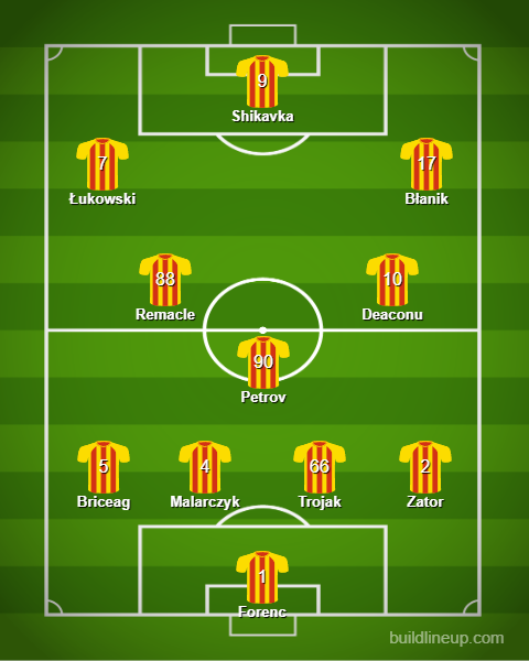 Wyżej ustawieni będą Ronaldo Deaconu oraz nowy nabytek, Martin Remacle. Trener Kuzera może dodatkowo skorzystać z usług takich zawodników, jak Dalibor Takáč oraz Nono. Na lewym skrzydle pewniakiem zdaje się być Jakub Łukowski, czołowa postać poprzedniego sezonu. Prawa strona może zostać obsadzona przez Dawida Błanika, a także Jacka Podgórskiego.