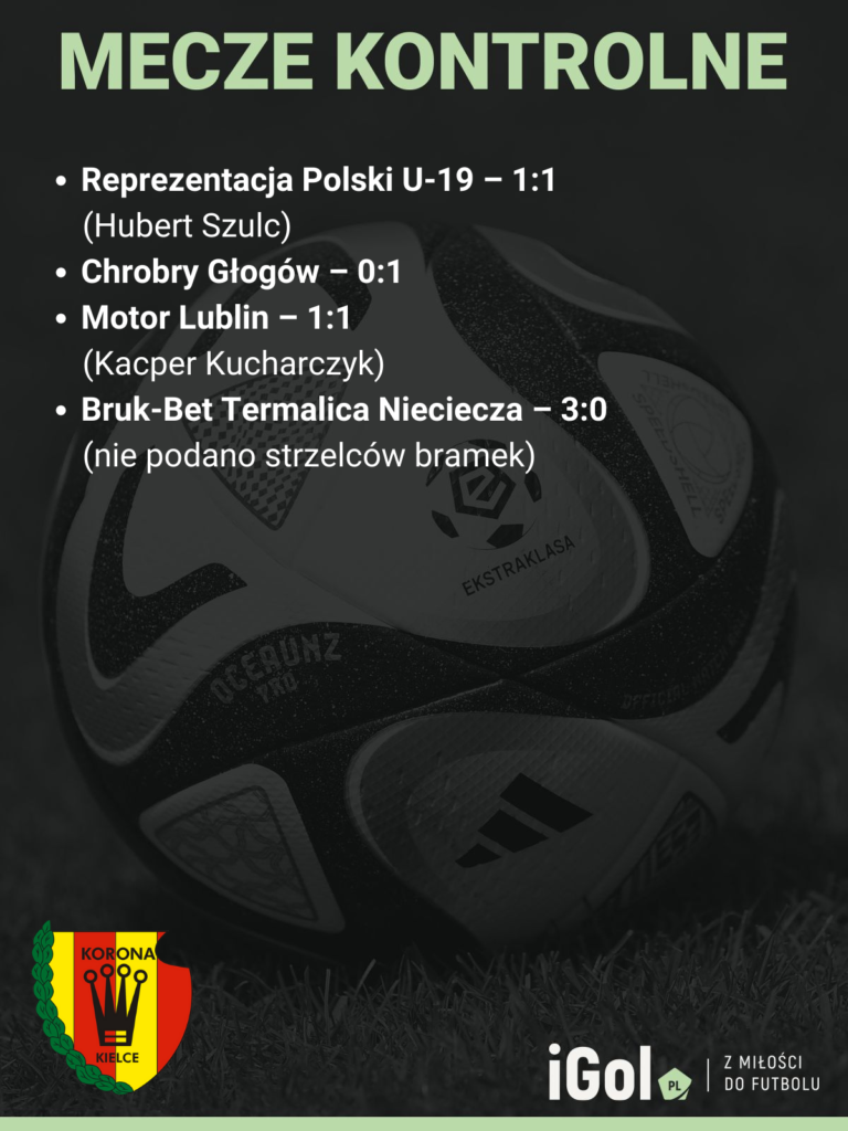 Po powrocie z obozu Korona zmierzyła się z beniaminkiem Fortuna 1. Ligi, Motorem Lublin, który pokonała 1:0. Jedyną bramkę dla podopiecznych Kamila Kuzery zdobył 17-letni Kacper Kucharczyk. Ostatnim meczem kontrolnym było starcie z Bruk-Betem Termalicą Nieciecza. Oba kluby uzgodniły, że zmierzą się się ze sobą w formacie 3×45 minut, a także, że spotkanie będzie zamknięte dla mediów oraz kibiców. Korona wygrała 3:0, lecz nie podano do informacji publicznej strzelców bramek.
