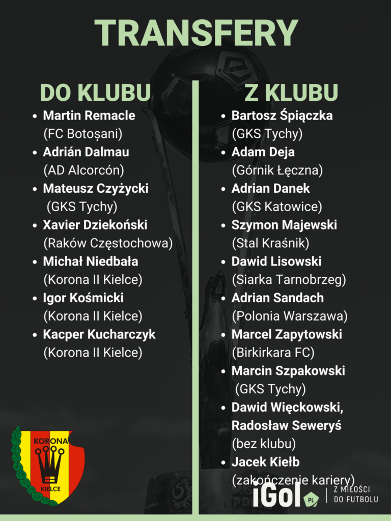 Trzeba przyznać, że okienko transferowe w porównaniu z innymi zespołami było w wykonaniu kielczan spokojne. Najciekawszymi nabytkami Korony są z pewnością Martin Remacle oraz Adrián Dalmau. Pierwszy z nich, środkowy pomocnik, zbierał piłkarskie szlify w Torino, by następnie spróbować swoich sił w Belgii. Następnie w lipcu 2020 roku przeszedł do ligi rumuńskiej, w której występował do końca zeszłego sezonu. Jego ostatnim klubem było FC Botoșani, które wypożyczało go do FC Universitatea Cluj, w której zanotował łącznie 44 występy. Teraz spróbuje swoich sił w ekstraklasie.