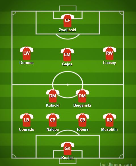 Trener Piotr Stokowiec przyzwyczaił do tego, że wytypować skład, jaki wystawi, jest niezwykle trudno. Na kilku pozycjach cały czas istnieją pewne niewiadome, więc nieraz kibice będą zaskoczeni, widząc wyjściową jedenastkę.