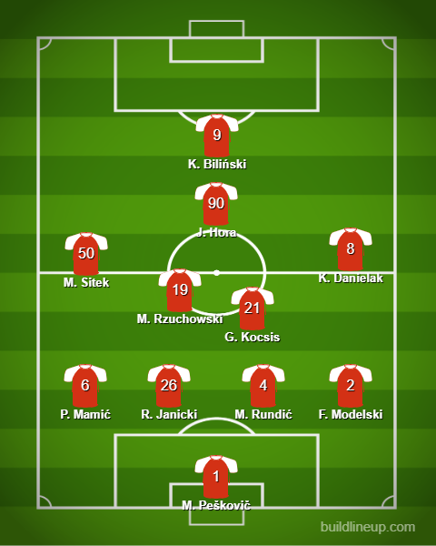 Wyjściową formacją będzie 1-4-2-3-1, ale w fazie ataku może się to zmienić na 1-4-4-2.