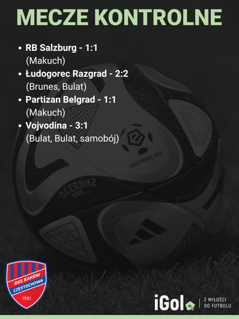 Podopieczni Łukasza Tomczyka mieli w Turcji rozegrać jeszcze jeden sparing. Niestety bardzo intensywne deszcze uniemożliwiły to, aby Raków zmierzył się także z serbską Baćką Topola. Trzeba przyznać, że drużyna z Częstochowy postarała się o naprawdę mocnych rywali na tym obozie przygotowawczym. Remisy z takimi ekipami jak RB Salzburg czy Łudogorec Razgrad trzeba uznać za dobre wyniki. Podczas pobytu w Turcji do Rakowa dołączyło czterech nowych zawodników. Mowa tutaj o Pawle Dawidowiczu, Isaku Brusbergu, Abrahamie Ojo oraz Mitji Ileniciu. Piłkarze oraz sztab trenerski „Medalików” wracają do Polski, aby już na miejscu przygotować się do zbliżającego się meczu z liderem PKO Ekstraklasy Wisłą Płock.