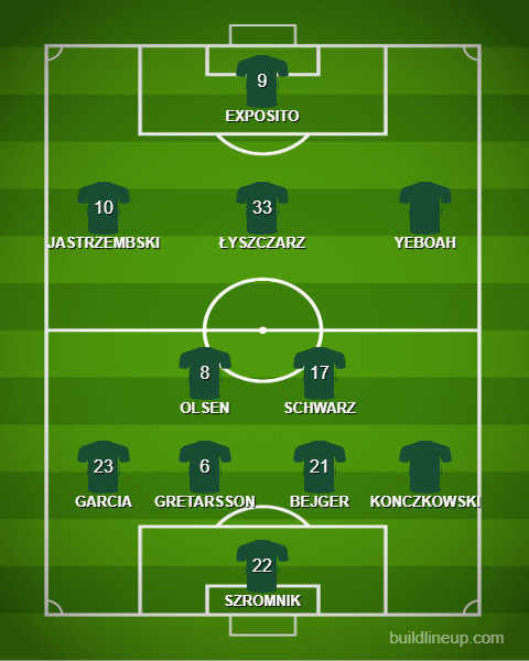 Linia obrony i pomocy również nie jest pewna, lecz mamy tu więcej faktów. Martin Konczkowski powinien bez problemu wskoczyć do pierwszej jedenastki, a reszta zawodników zostanie wybrana prawdopodobnie na podstawie formy w sparingach oraz ubiegłych rozgrywkach. Pamiętać należy także o pozycji młodzieżowca, którą uzupełnić może Łukasz Bejger. Wśród środkowych pomocników sprawa wydaje się jasna. Petr Schwarz i Patrick Olsen nie mają większej konkurencji. Michał Rzuchowski początkowo może być rezerwowym, ale niewykluczone, że wywalczy sobie miejsce w składzie.