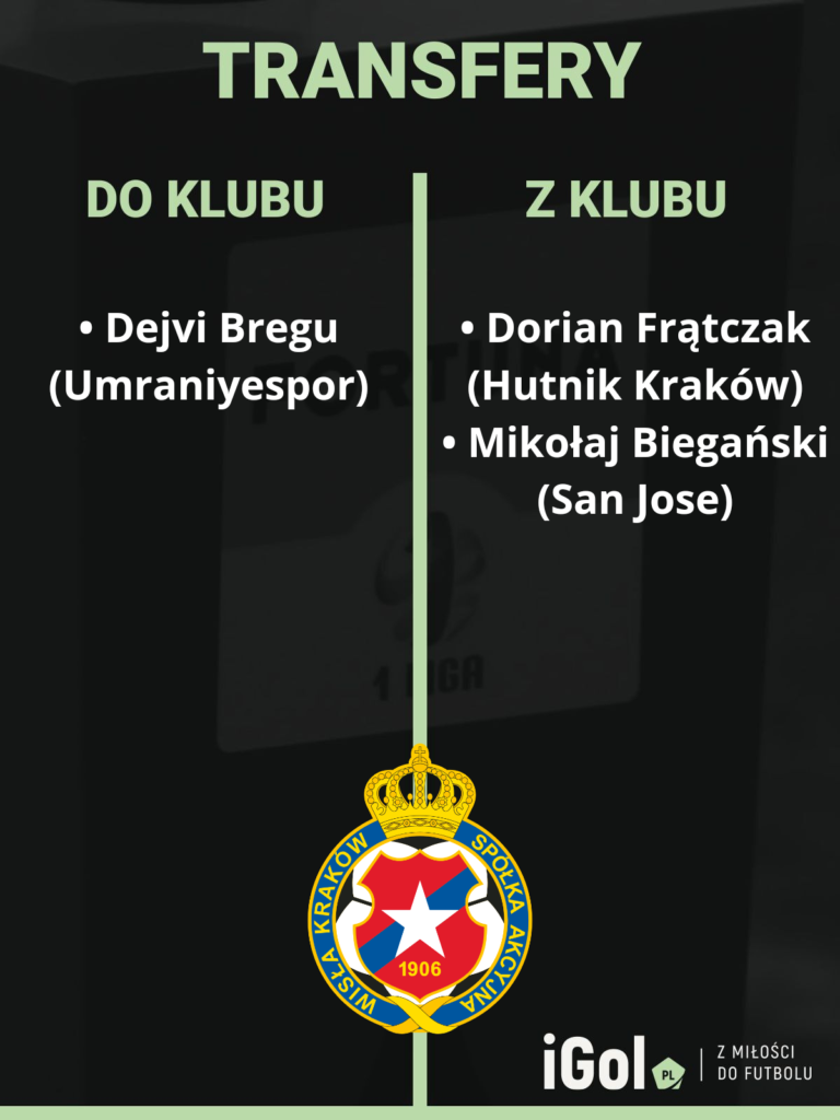 Zimowe okienko transferowe nie było tym razem zbyt gorące, bo z klubem pożegnało się tylko dwóch bramkarzy: Dorian Frątczak oraz Mikołaj Biegański, a zespół wzmocnił pozyskany z tureckiego Umraniyesporu Albańczyk Dejvi Bregu. 28-latek to zawodnik ofensywny, który powinien zaostrzyć rywalizację na lewej stronie boiska, chociaż… Wisła ma tak silną kadrę, że w 1-ligowych warunkach jest zespołem – przynajmniej na papierze – dużo lepszym niż reszta stawki.