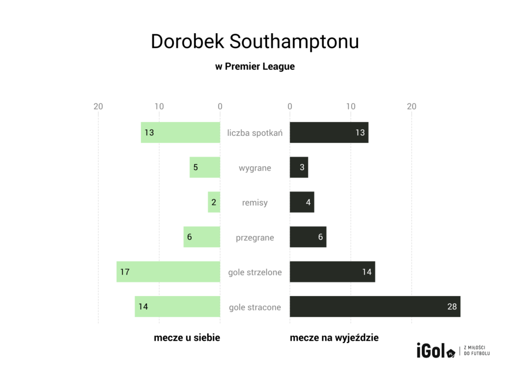 Trzy gole strzelone mniej na wyjazdach i aż o 14 więcej straconych niż w meczach domowych budzi niepokój. Oczywiście pod uwagę trzeba wziąć dziewięć straconych bramek na Old Trafford, jednak po odjęciu tego meczu to nadal 19 straconych goli. Southampton na wyjazdach ma nieszczelną defensywę, a skutkiem tego jest więcej remisów i mniej zwycięstw. Dobrą drużynę cechuje dobra gra zarówno w meczach domowych, jak i wyjazdowych. Ekipie Jana Bednarka do miana takiej drużyny jeszcze zatem sporo brakuje.