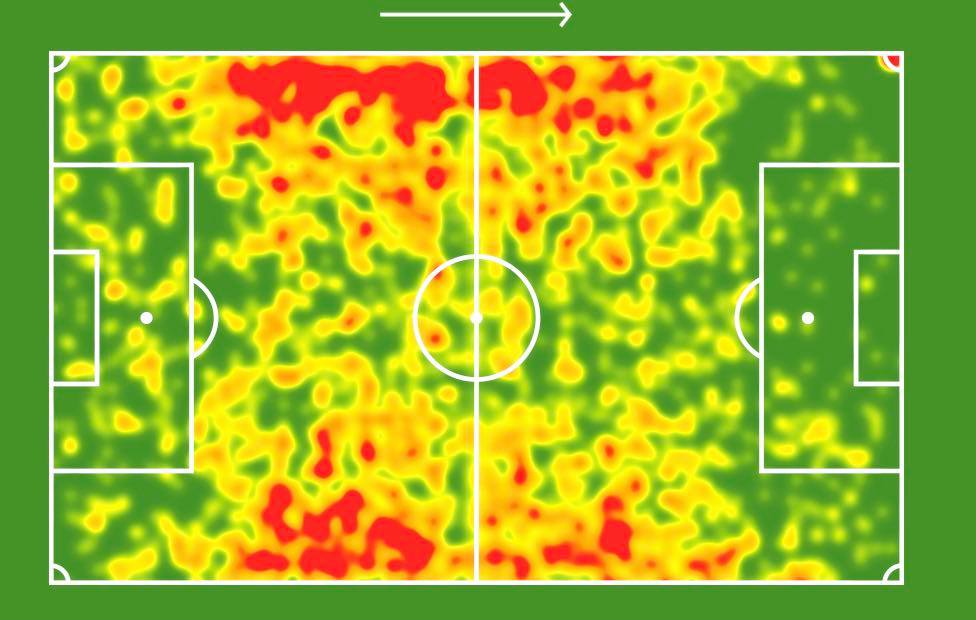 To Argentyńczyk wpoił piłkarzom Leeds grę, która polega na szybkości, ofensywie i zabójczej sile na bokach boiska. Jednak wszystko poprzedza niezmordowany pressing. Gdyby chciało się to prosto wytłumaczyć, wystarczy spojrzeć na poniższą heatmapę z portalu Sofascore.com, która pokazuje, gdzie i jak porusza się uniwersalny żołnierz Argentyńczyka podczas trwania całego sezonu – wszędzie, gdzie trzeba.