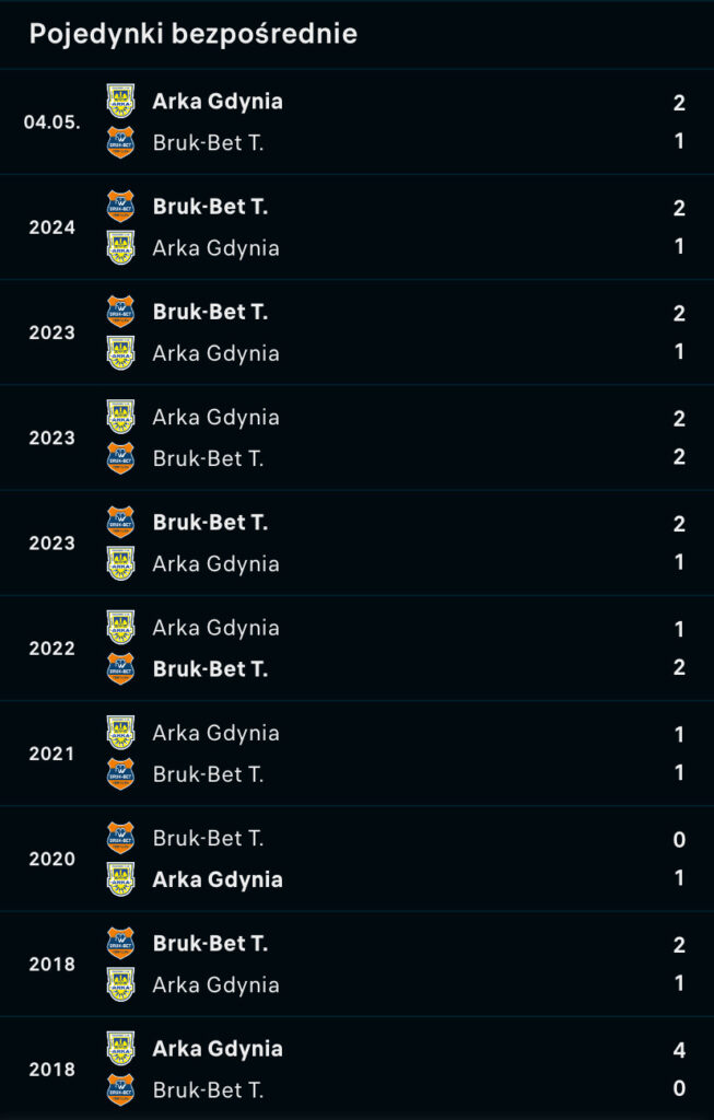 Termalica Bruk-Bet Nieciecza vs Arka Gdynia – historia bezpośrednich spotkań
