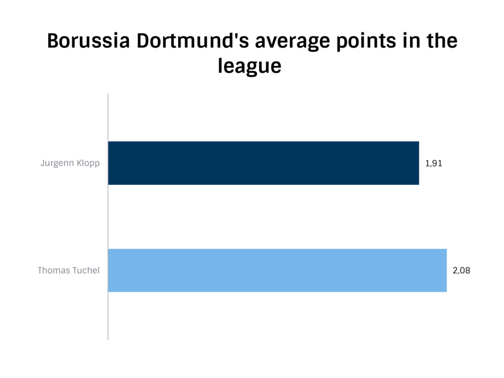 Thomasa Tuchela podczas pobytu w Mainz łączono między innymi z pracą nowego selekcjonera Niemiec. Ciekawą opcją było rozpatrywanie w kontekście zmiany Guardioli w Bayernie. Nikogo nie zdziwiło więc, kiedy po odejściu Kloppa z Borussi na jego miejsce sprowadzono właśnie Tuchela. Obaj panowie pewnie przeżyli deja vu, gdyż to właśnie Jürgenn Klopp, przechodząc do zespołu z Dortmundu, robił miejsce zmiennikowi w Mainz. 42-letni szkoleniowiec, obejmując Borussię, mógł pokazać w pełni swój kunszt. Początek miał znakomity, do tego widowiskowy, ofensywny futbol. Premierowy sezon zakończony na drugim miejscu z największą liczbą strzelonych bramek w lidze i z niesamowitym dorobkiem punktowym na mecz 2,29.