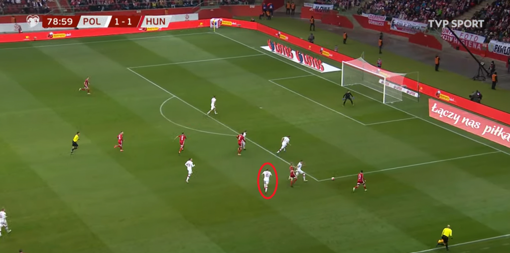 Następnie, jak można zauważyć na jednym z powyższych obrazków, Tymoteusz Puchacz nie spieszył się z powrotem do formacji defensywnej. Jeszcze lepiej prezentują to niżej załączone zdjęcia.