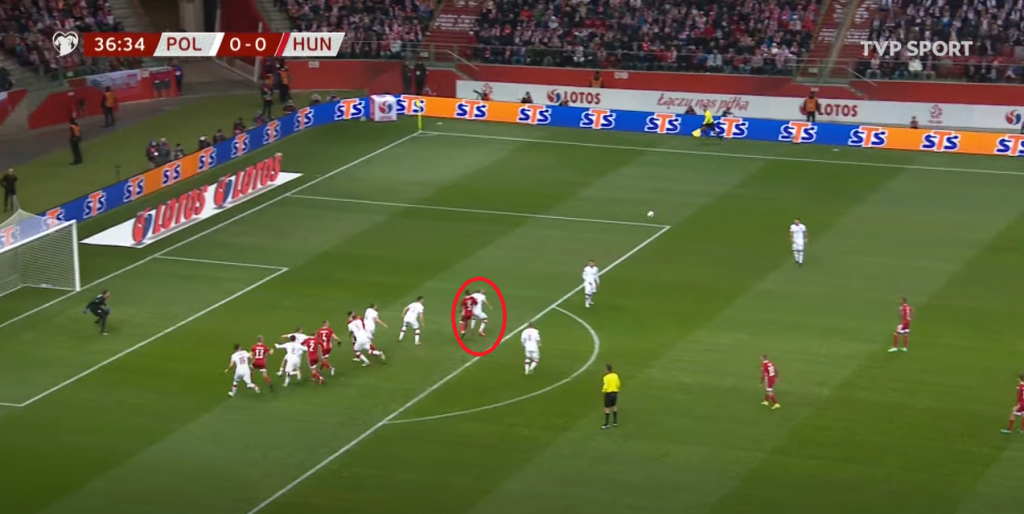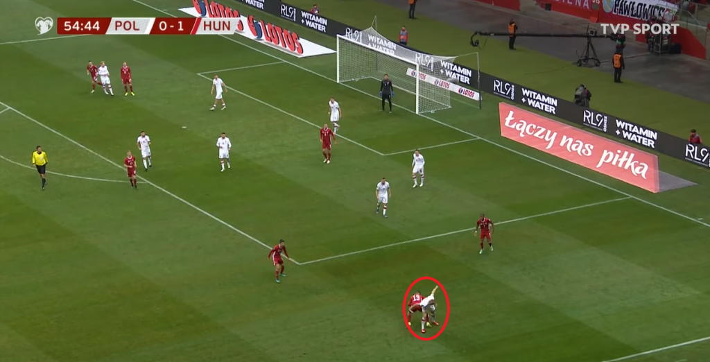 Ostatni fragment, jaki postanowiliśmy zaprezentować z tego spotkania, to całkowity brak reakcji przy podaniu do strzelca drugiej bramki dla Węgier. Zabrakło nawet desperackiej próby wślizgu, zabrakło… po prostu chęci.