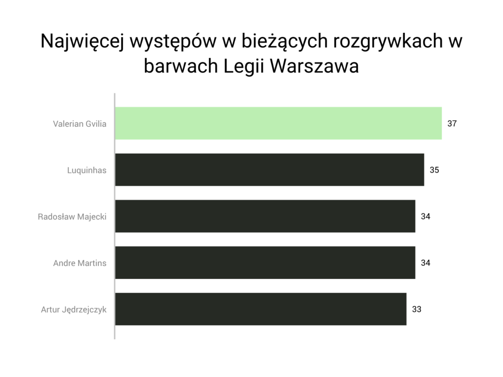 W przypadku większości zespołów najwięcej rozegranych spotkań mają zazwyczaj bramkarze. To pokazuje, jak ważnym elementem w układance Aleksandara Vukovicia jest Valerian Gvilia. Wystarczy wspomnieć, że w tym sezonie reprezentant Gruzji opuścił zaledwie jeden mecz. Było to starcie pomiędzy Legią, a Puszczą Niepołomice w Pucharze Polski. To spotkanie „Vako” przesiedział na ławce.