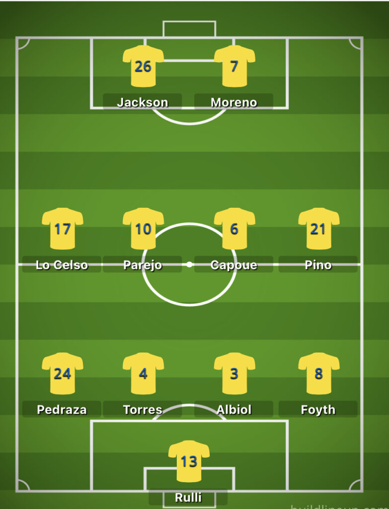 W linii pomocy warto zwrócić uwagę na Daniega Parejo, który jest jak wino i pomimo zaawansowanego wieku potrafi zrobić różnicę na boisku i posłać nietuzinkowe podanie za szyki obronne rywali. Giovani Lo Celso to bardzo dobry skrzydłowy, który robi wiatr na bokach pomocy i całkiem nieźle drybluje. Warto przypomnieć, że kilka lat temu angielski Tottenham zapłacił za niego ponad 30 milionów euro. Jednak najniebezpieczniejszym i najlepiej dryblującym zawodnikiem linii pomocy jest Samuel Chukwueze. Wyciągnięty kilka lat temu ze szkółki z Afryki, dziś wg Transfermarkt jest wyceniany na 20 mln euro. Zaledwie 23-letni piłkarz dysponuje ogromną szybkością, daję radę w rozegraniu, ale przede wszystkim lubi i potrafi zejść ze skrzydła do środka i oddać strzał na bramkę. Można powiedzieć o nim, że w zasadzie jest piłkarzem obunożnym ze słabszą prawą nogą. Jest to z pewnością zawodnik, który może zadecydować o końcowym wyniku.