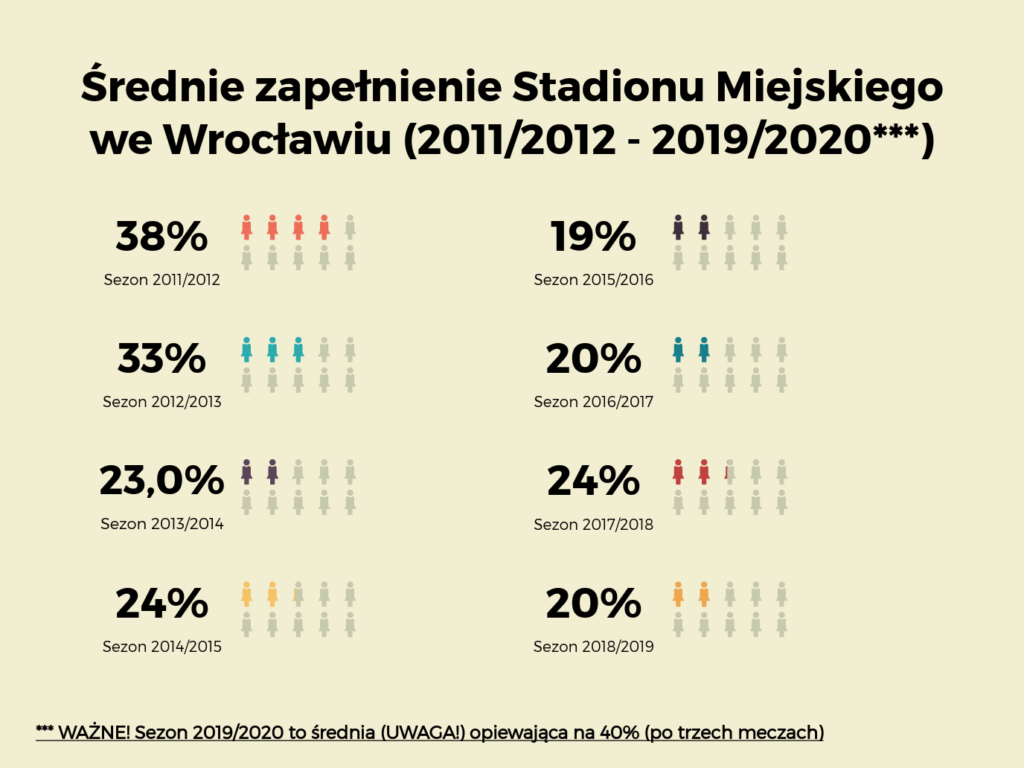 Co w tej narracji znaczące, odkąd Stadion Miejski we Wrocławiu został oddany do użytku, średnia kibiców zasiadających na trybunach nie była tak dobra od 2012 roku.