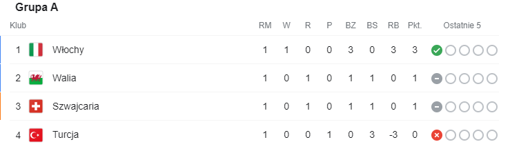 Za nami wszystkie mecze pierwszej kolejki w grupie A. Tak prezentuje się aktualna tabela. Z pewnością jest to dobry układ dla bezstronnego kibica, który zapewni dużo emocji w nadchodzących starciach. Poniżej aktualna tabela.