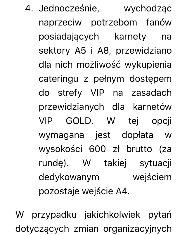 Przecież to nawet ze zdroworozsądkowego podejścia nieetyczne zagranie ze strony klubu. Tak się po prostu nie robi. Zmiana reguł w trakcie gry nigdy i nigdzie nie jest mile widziana. Zwłaszcza że niektórzy zapłacili za wejściówki na cały sezon z góry i teraz robi im się pod górkę.