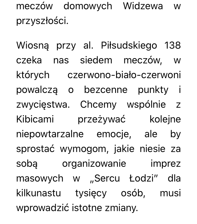 Jedną i prawdopodobnie główną z przyczyn wykupienia przeze mnie karnetu na trybunę A8 było to, że wychodząc z domu o 18.50 z pobliskiego osiedla o 19.05 siedziałem na swoim stałym krzesełku bez żadnego stresu i przepychania od początku otwarcia nowego stadionu. Nadmieniam, że na meczu ekstra klasowym Widzewa pierwszy raz pojawiłem się w 1975 r na porażce z Pogonią 0:2. Cieszyło mnie, że doczekałem czasów tak wspaniałego stadionu mojego Widzewa bo bywałem w tym samym miejscu jeszcze wtedy kiedy była tu drewniana trybuna. No cóż i znów przypomniała mi się ta porażka. Takie kolejne 0:2. Raz że poczułem się takim "gorszym sortem" chyba, że zapłacę 600 PLN ( co nie jest może i problemem tylko, że ja na meczę ni przychodzę żreć, nie jestem głodny no i dieta), a dwa zmienia mi się reguły jak już wszedłem na to boisko, jakiś pajączek ( patrz mój podpis) pod osłoną nocy wypisuje pismo jak jakiś wytrawny polityk, z którego wynika, że i tak zrobi co będzie chciał. Cóż pooglądam sobie mój ulubiony klub w dostępnych transmisjach mając świadomość ,że na moje miejsce na pewno znajdzie się chętny z pobliskiego regionu.