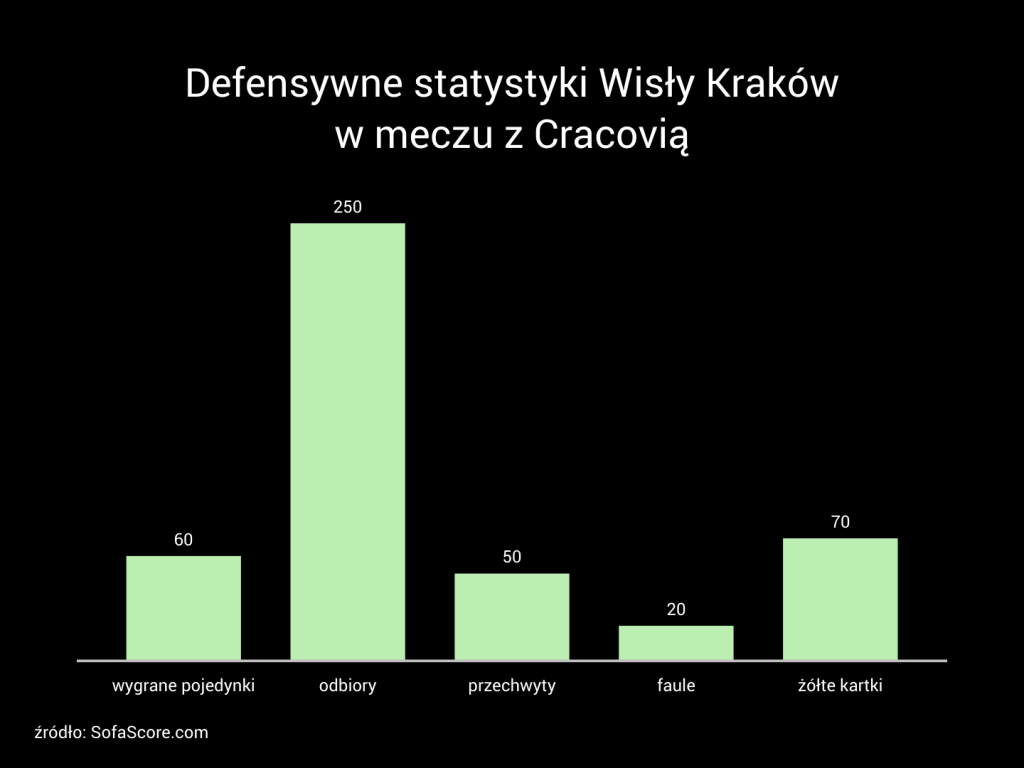 Na szczególne wyróżnienie zasługuje Matej Hanousek, który w tych zawodach zainkasował siedem wygranych pojedynków. Jest to prawie najlepszy wynik z całej drużyny Wisły. Tyle samo miał tylko strzelec bramki Yaw Yeboah. Co do samej gry w destrukcji powinniśmy też pochwalić rzecz jasna obydwu stoperów oraz Ashrafa El Mahidouiego. Ostatni z nich spisał się bardzo dobrze, grając na pozycji defensywnego pomocnika.