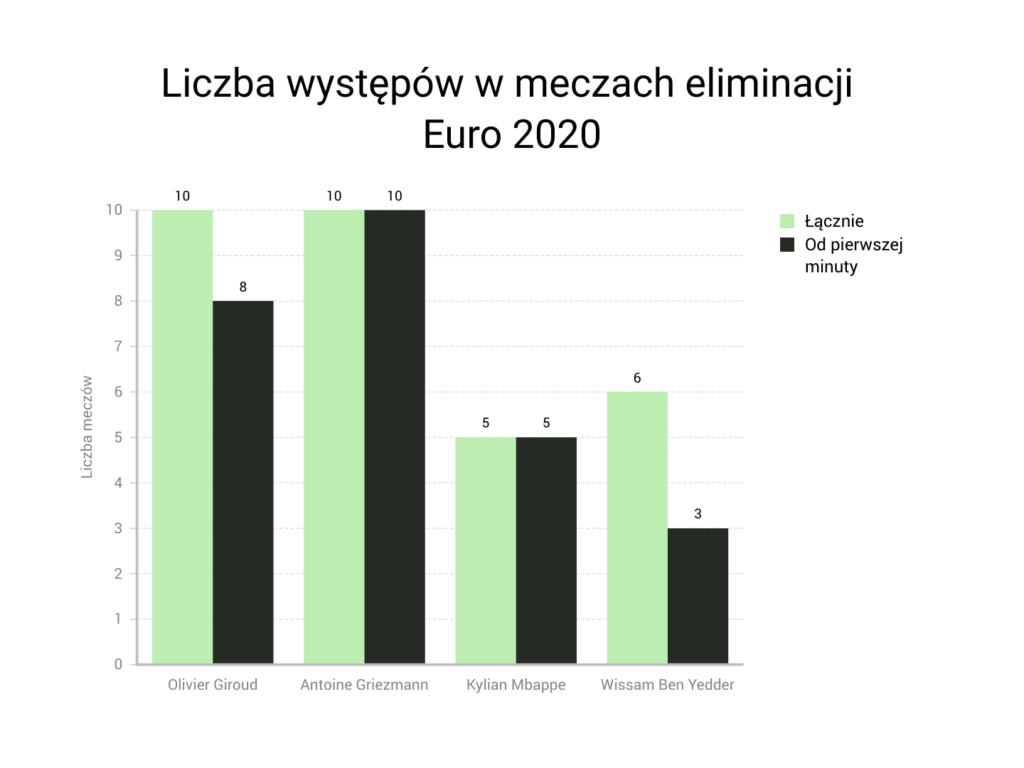 Wysoki Olivier Giroud jest zawodnikiem najbardziej wysuniętym, do którego trafiają górne piłki. Mbappe bardzo dobrze czuje się na prawym skrzydle, a Griezmann może w zależności od potrzeby grać na drugim skrzydle, jako drugi napastnik bądź zawodnik podwieszony pod piłkarza Chelsea. Wariantów jest bardzo dużo. Jeden gwarantuje przewagę w powietrzu, drugi finalizowanie akcji i rozgrywanie, a trzeci szybkość i technikę.