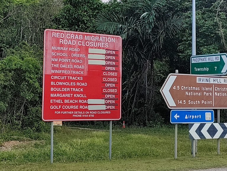 Wyspa Bożego Narodzenia słynie z czerwonych krabów. W okresie października i listopada dokonują one corocznej migracji z lasów na brzeg terytorium. Zakłada się, że aktualnie ich populacja może sięgać nawet 100 milionów! Na wyspie wielkości około połowy Poznania! Mieszkańcy muszą się zatem dostosowywać do trybu życia krabów, co ułatwiają nawet znaki drogowe.