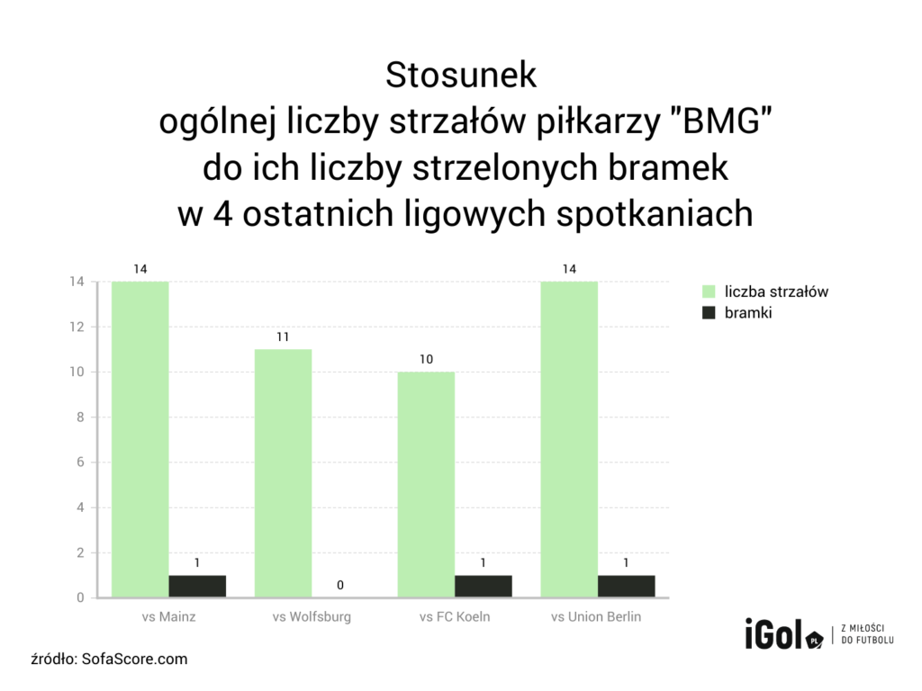Podsumowując, na słabą formę Borussii Mönchengladbach składać się może wiele czynników, lecz te są jednymi z głównych. Z pewnością gdy kibic spojrzy na taktykę zespołu, może wytknąć jeszcze więcej błędów w poszczególnych spotkaniach. Jednakże z problemów stricte boiskowych to właśnie skuteczność wydaje się tym największym.