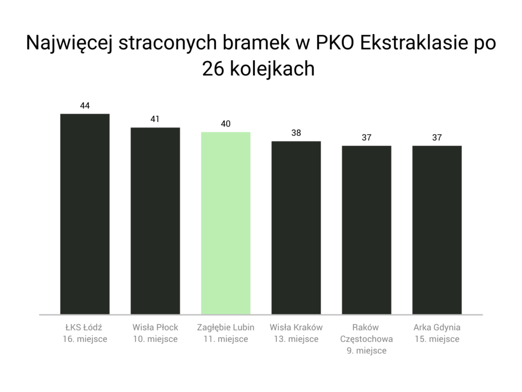 Zresztą wiemy już, że po zakończeniu sezonu linia defensywna drużyny z Lubina ulegnie osłabieniu. Do Lecha Poznań przeniesie się Alan Czerwiński, Bartosz Kopacz odejdzie zaś do Lechii Gdańsk. Obaj zawodnicy wystąpili w 25 z 26 możliwych spotkań ligowych. Wszystko wskazuje na to, że latem obronę Zagłębia trzeba będzie budować na nowo.