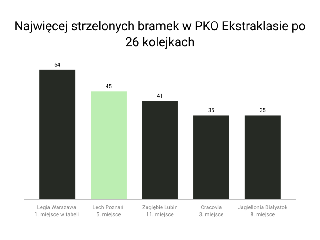 Zagłębie Lubin zajmuje wysokie miejsca w klasyfikacjach drużyn z największą liczbą zdobytych oraz straconych goli.