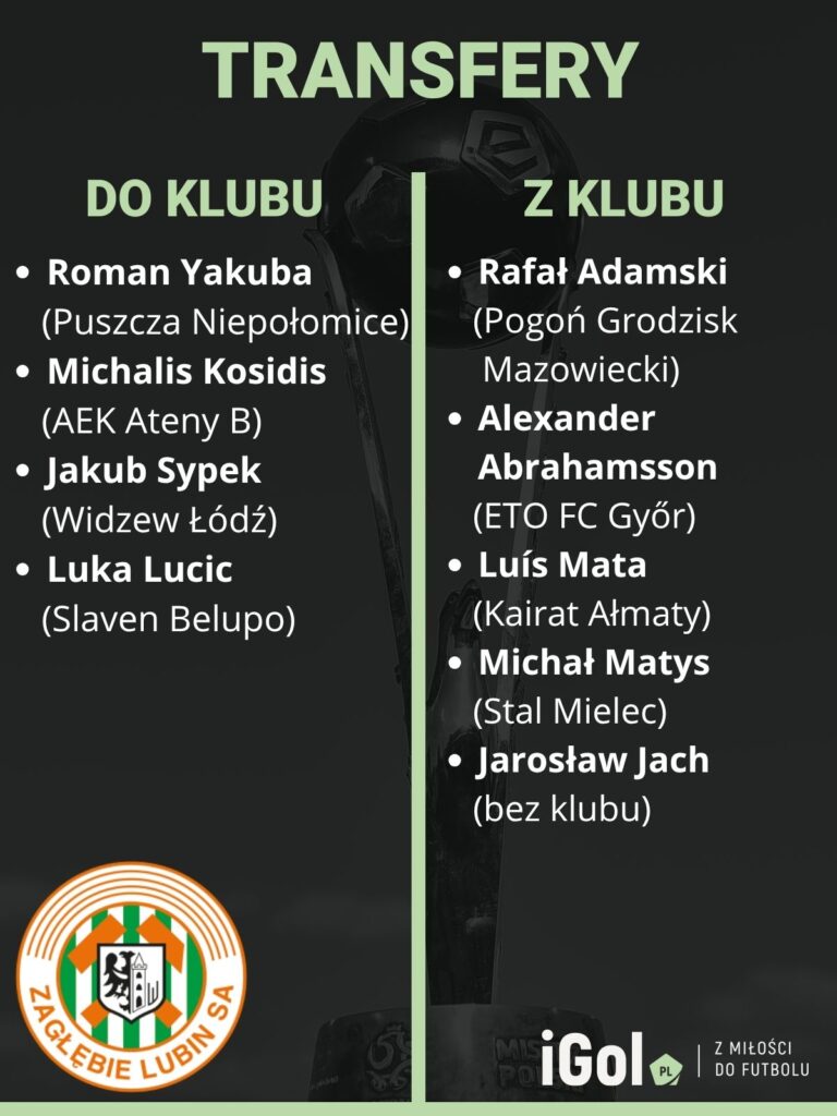 Zagłębie Lubin zbilansowanie prowadzi letnie okienko transferowe. Jak do tej pory przybyło czterech graczy, z czego aż trzech posiada ekstraklasową przeszłość. Jakub Sypek będzie chciał podbić naszą ligę po tym, jak nie powiodło mu się… w Widzewie Łódź. Dla 24-latka to będzie bardzo ważny sezon, w którym będzie chciał pokazać światu swój futbolowy talent i zaakcentować to solidnymi liczbami. Defensywa została wzmocniona Romanem Yakubą. Środkowy obrońca Puszczy Niepołomice utrzymał swój byt w PKO Ekstraklasie, w przeciwieństwie do byłego pracodawcy. Czy w tym roku zaliczy drugi spadek z rzędu?