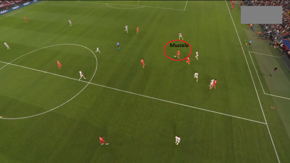 Po przerwie trener Julian Nagelsmann zdjął z boiska słabo grającego i mającego na koncie żółtą kartkę Marcela Sabitzera. W jego miejsce na plac wpuścił Leona Goretzkę. Po wejściu Niemca gra Bayernu zaczęła wyglądać o wiele lepiej. Pomocnik odgrywał w zasadzie tę samą rolę co jego poprzednik, lecz robił to o wiele solidniej. Dodatkowo jego siła fizyczna pozwoliła na sprawniejsze opanowanie środka pola. Goretzka nie tracił głupio piłki, bardzo dobrze ustawiał się i przewidywał zagrania przeciwników, a co najważniejsze, po odzyskaniu piłki bardzo szybko podciągał całą akcję wyżej.