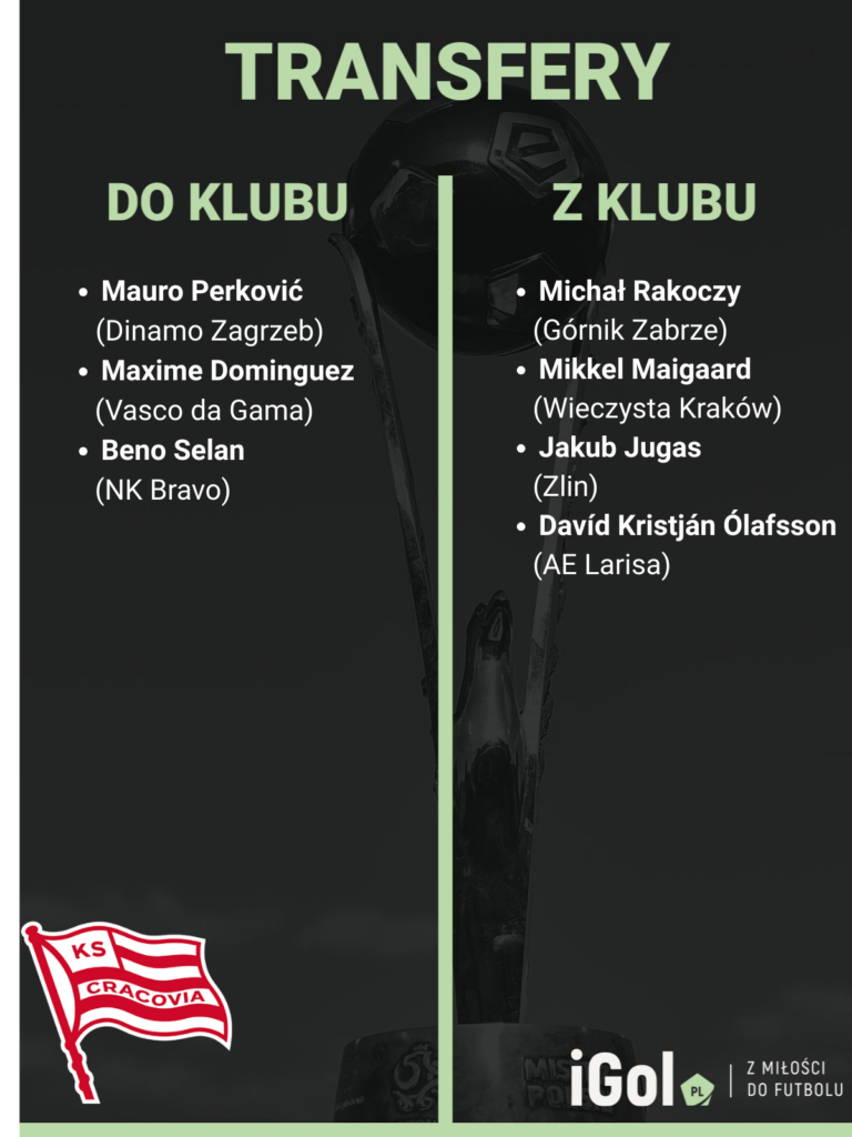 Pierwszym nowym nabytkiem Cracovii został Maxime Dominguez, czyli szwajcarski ofensywny pomocnik. 29-latek reprezentował do tej pory barwy brazylijskiej Vasco da Gama, a w swoim CV ma między innymi Gil Vicente, Raków Częstochowa czy Miedź Legnica. Prawdopodobnie Dominguez ma być zastępcą Mikkela Maigaarda, który przeszedł niedawno do Wieczystej Kraków. Duńczyk był podstawowym zawodnikiem u Elsnera i trudno będzie go zastąpić. Szczególnie że Szwajcar nie odbył okresu przygotowawczego z drużyną, lecz nie można go skreślać, choćby ze względu na doświadczenie.