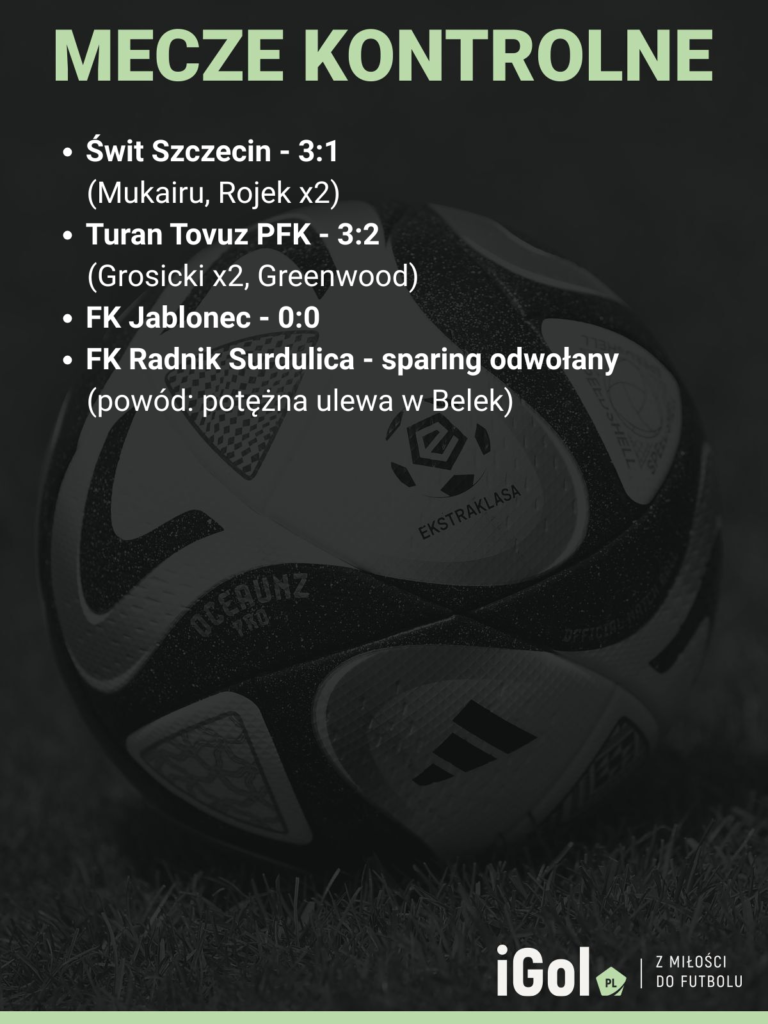 Nie zapisaliśmy tego na grafice, jednak z kronikarskiego obowiązku informujemy, iż w trzy pierwsze lutowe poniedziałki Pogoń rozegra dodatkowe sparingi z ekipami z drugich lig i niżej. Mecze te mają być okazją do zebrania dodatkowych minut przez zawodników grających mniej w lidze.